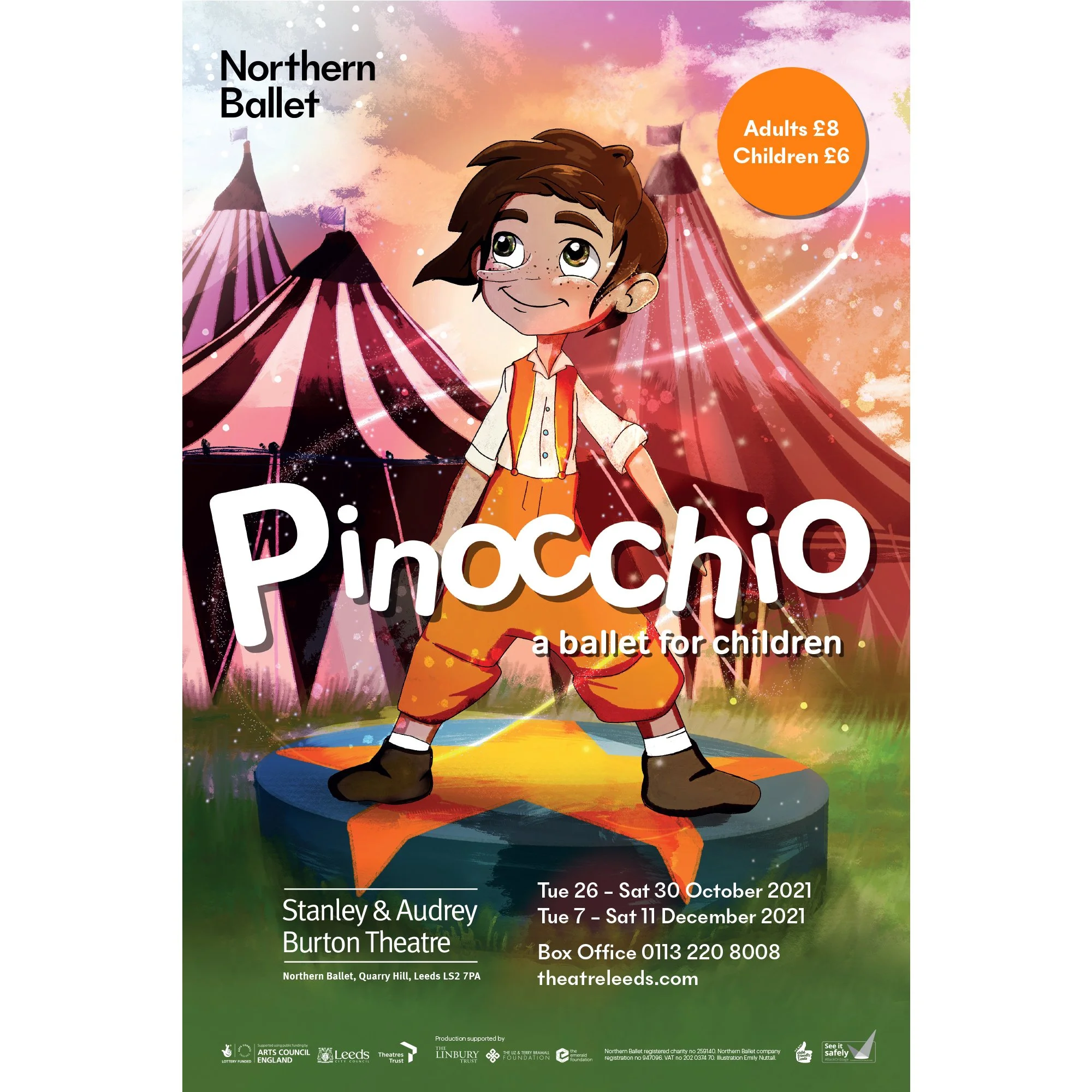 Artwork below for Pinocchio, Northern Ballet’s children’s ballet, and the Pinocchio Appeal.